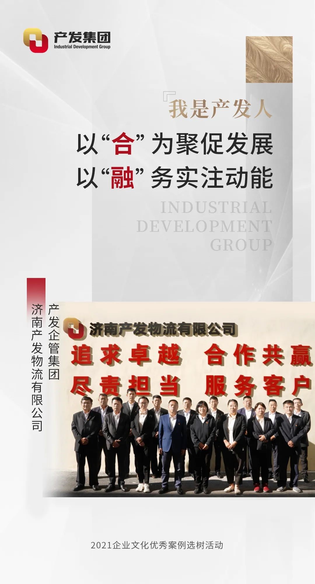 產(chǎn)發(fā)物流公司未來(lái)將繼續秉持“合作、開(kāi)放、分享、共創(chuàng )”的理念,對外與客戶(hù)及合作伙伴之間協(xié)同共贏(yíng)、創(chuàng )造利潤,對內各部門(mén)之間,同事之間秉持以“合”為聚、以“作”務(wù)實(shí),為集團高質(zhì)量發(fā)展注入新動(dòng)能!