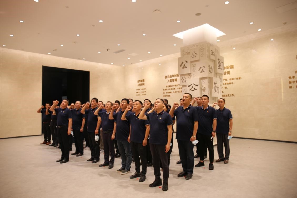在宣誓廳,參觀(guān)人員面對鮮艷的黨旗重溫入黨誓詞,回憶感悟不忘初心、牢記使命的責任感。