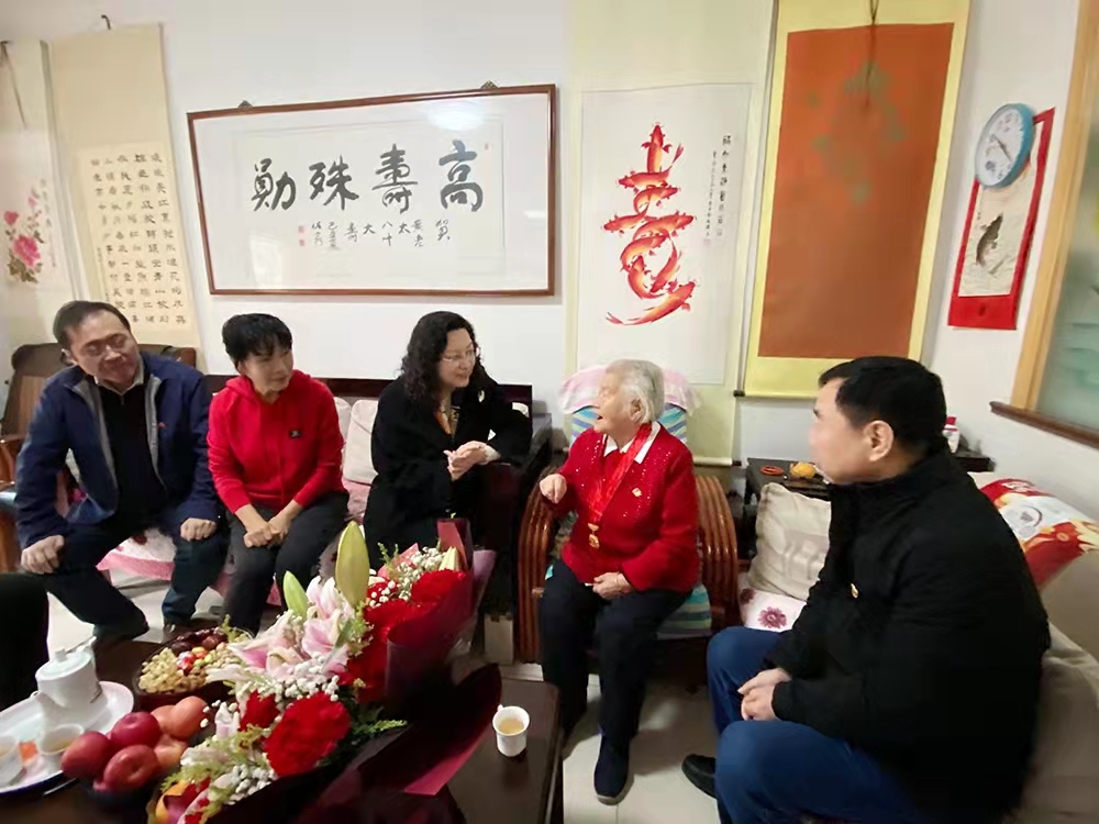 隨后黃蓓一行來(lái)到元首集團離休老干部、老黨員黃顯和家中,送上鮮花和慰問(wèn)金,致以佳節祝福,與黃顯和老人座談交流。93歲的黃顯和老人年輕時(shí)在湖南讀書(shū)期間就接受革命洗禮,秘密加入學(xué)校進(jìn)步社團,在“白色恐怖”下開(kāi)展愛(ài)國運動(dòng),轉業(yè)后在濟南針織廠(chǎng)辛勤耕耘近十八載,1982年4月離休,是名副其實(shí)的巾幗模范代表。黃蓓代表集團黨委感謝她為黨和企業(yè)做出的突出貢獻,對其在革命年代的英勇事跡表示崇高敬意,表示產(chǎn)發(fā)集團要傳承好老一輩不懼艱辛、敢于奮斗、無(wú)私奉獻的精神,凝心聚力、接續奮斗。